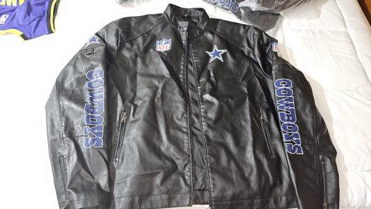 Cowboys Black Faux Leather Bomber Jacket Coat Football SLIM FIT!!!!